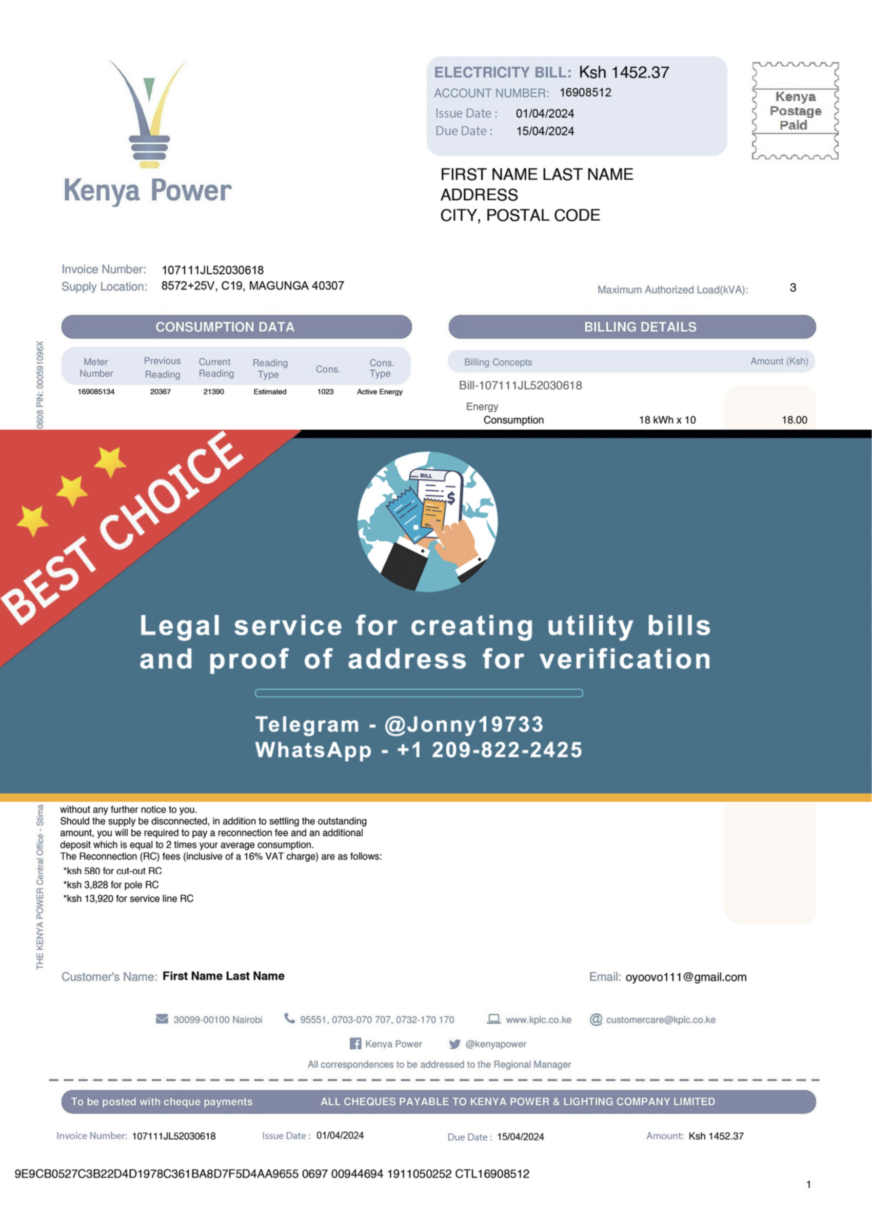 New Kenya Power Fake Utility bill
