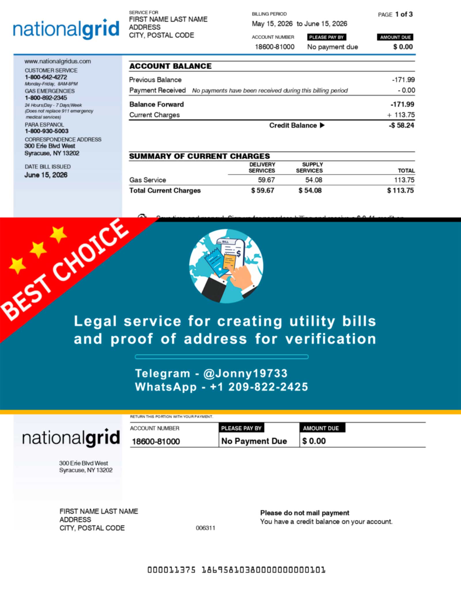 National Grid is a major electricity and natural gas utility operating in the northeastern United States. It issues monthly utility bills that are commonly requested for proof of address and residence verification, subject to platform-specific review and acceptance criteria.